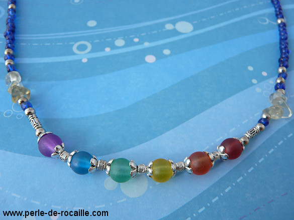 Collier rainbow composé de perles en verre dont certaines à effet dépoli